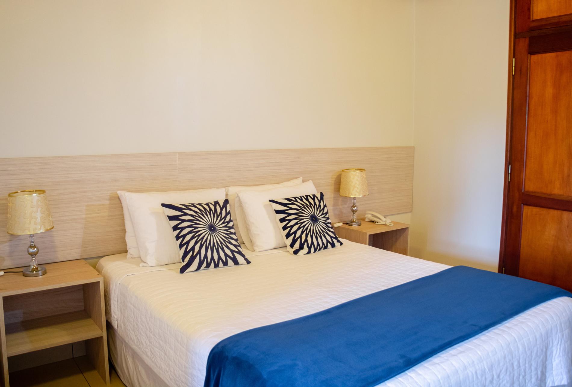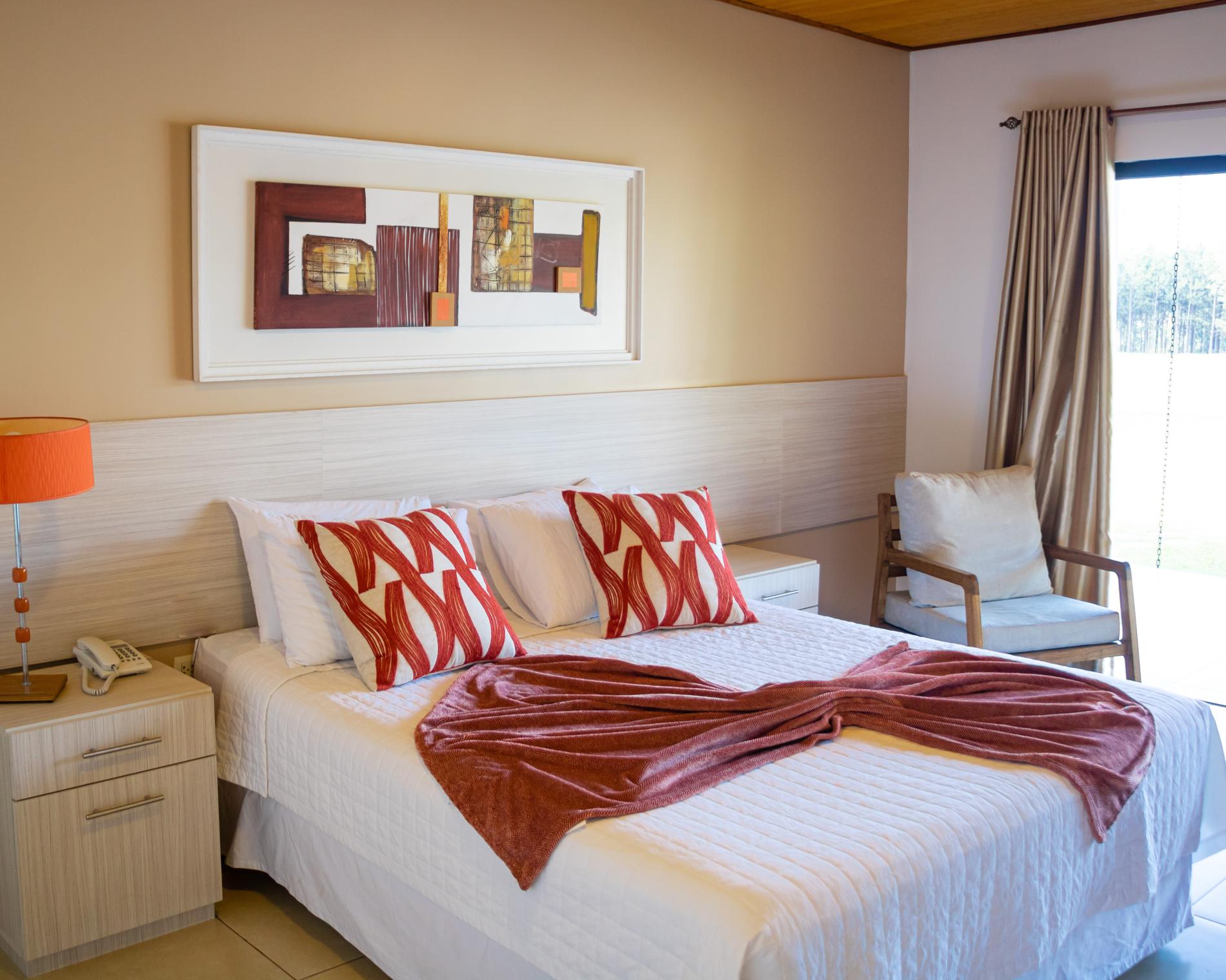 El hotel ofrece habitaciones Standard con vista al patio interno, ideales para quienes buscan tranquilidad y privacidad, y habitaciones Superiores con acceso exclusivo a un hall privado que conecta directamente con la piscina, brindando una experiencia única de contacto con la naturaleza.